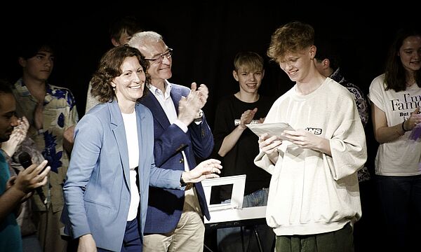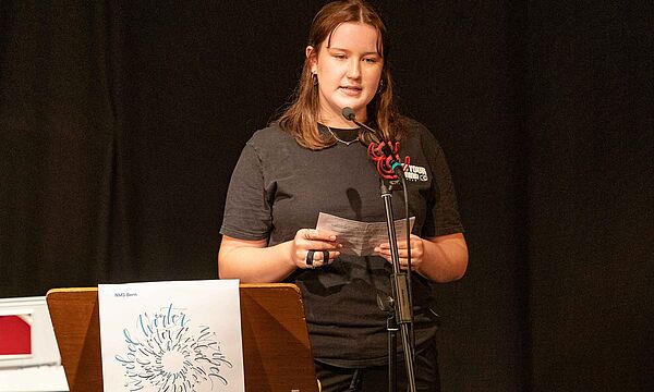 Die jungen Poetinnen und Poeten brachten den bis auf den letzten Platz gefüllten Saal zum Beben. Samuel Richner, ehemaliger NMS-Schüler und Poetry Slam Schweizermeister 2022, und Kay Wieoimmer legten mit ihrer humorvollen und einfühlsamen Moderation einen wunderbaren Boden für die Auftritte der Lernenden. Der Chor des Zusatzunterrichts sorgte für einen stimmungsvollen Rahmen und die 7. Sekundarklasse kümmerte sich um das leibliche Wohl des Publikums. Die Lernenden performten souverän vor vollen Rängen und brachten das Publikum zum Lachen, Weinen, Nachdenken und tosend Applaudieren. Entsprechend schwer war es, eine Siegerin oder einen Sieger zu küren... Raketen des Applauses und mehrfaches Hinhören waren nötig, bis am Schluss klar war: Kimi Beer ist mit seinem Text «Äuä» Gewinner des diesjährigen Wörterwirbels. Herzliche Gratulation! Dicht gefolgt von Minne («vom Spiegu!») Lengacher und Elin Emmenegger.
