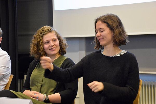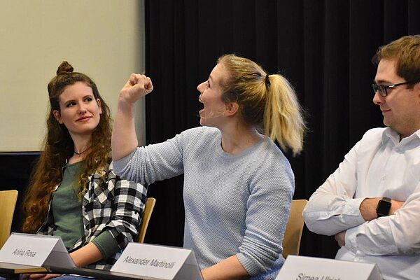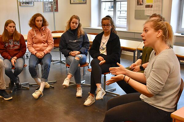 Der Höhepunkt des Tages war ein Treffen zwischen den TertianerInnen und Alumni des Gymnasiums NMS. An der Podiumsdiskussion und in kleineren Austauschrunden konnten unsere SchülerInnen von den Erfahrungen der NMS-AbsolventInnen profitieren, Tipps bekommen und Fragen stellen, wie zum Beispiel: Welche Kompetenzen sind wichtig für das Studium und generell fürs Leben? Inwiefern ist die Wahl des Schwerpunktfachs für das zukünftige Studium wichtig? Was tun, wenn ich merke, dass mein Berufswunsch nicht realisierbar ist oder wenn mir die Studienrichtung nicht entspricht?