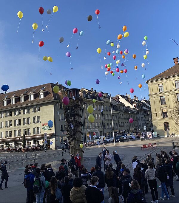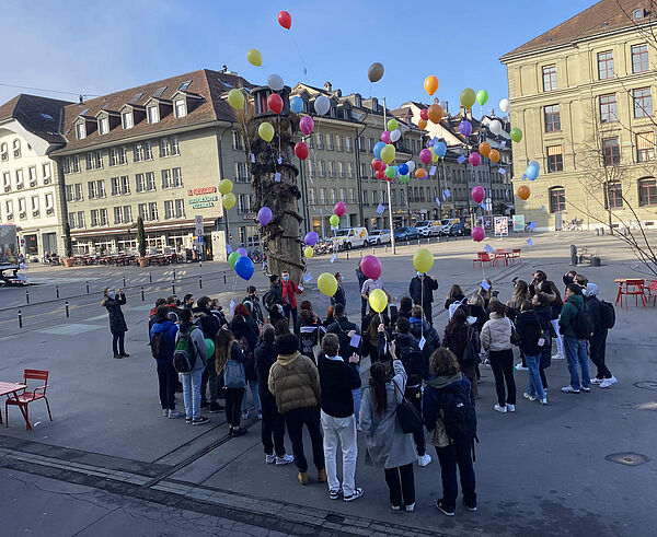 Die Ideen gehen vom Bau eines optimierten Bienenkastens für Stadtbienen über Therapiemöglichkeiten der Multiplen Sklerose bis hin zur künstlerischen Auseinandersetzung mit der griechischen Mythologie sowie deren Wiederbelebung in der heutigen Gesellschaft, um nur einige Forschungsfragen zu nennen. Mit einem Ballonwettbewerb haben wir Ende Januar auf dem Waisenhausplatz vor der NMS den Start der Maturaarbeit eingeläutet - wir wünschen ein gutes Gelingen dieser Arbeit - und wer weiss, was passiert, wenn die Ballons gefunden werden?