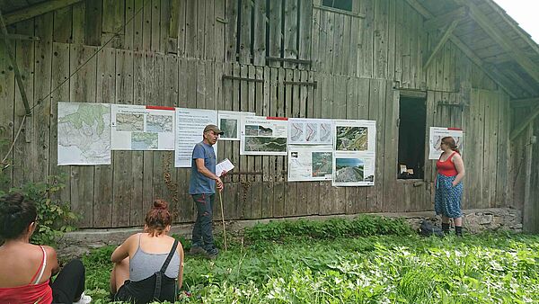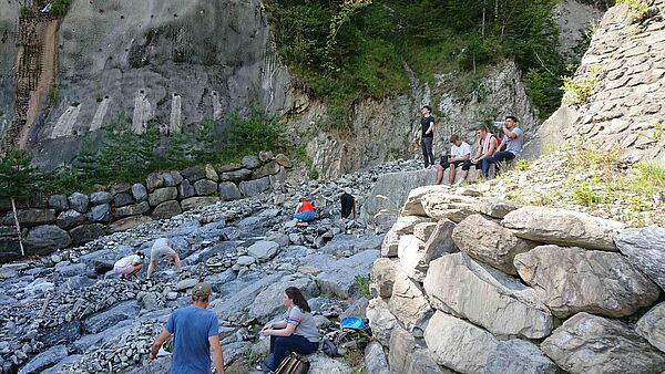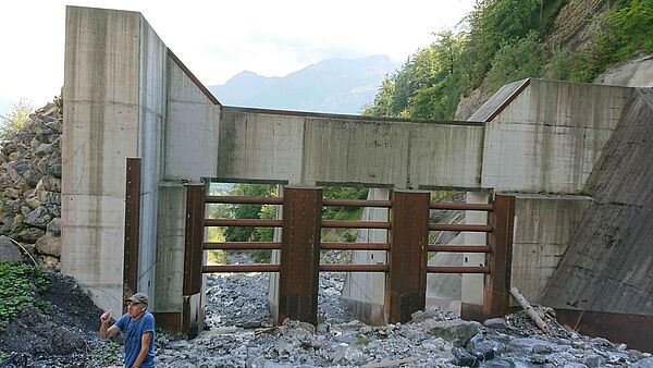 Der Präsident der Schwellenkooperation Schwanden, Nachbargemeinde von Brienz, nahm die Teilnehmerinnen und Teilnehmer mit auf eine Suche nach den Spuren des zerstörerischen Murgangs vom August 2005 und erläuterte das aktuelle Hochwasserschutzkonzept beim Glyssibach.