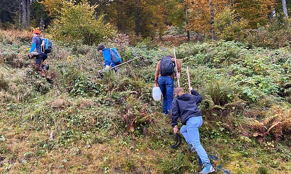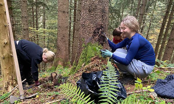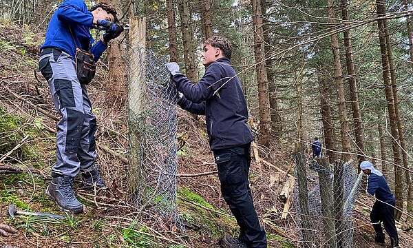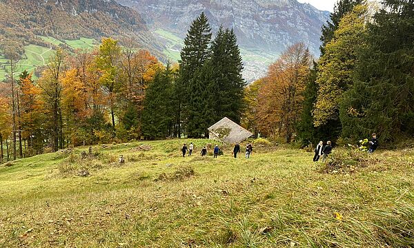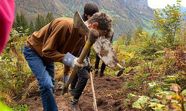 Um diese wichtige Kulturlandschaft zu erhalten, sind Pflege und Forschung unerlässlich. Genau das haben die Lernenden experimentell umgesetzt: Sie trugen zur Erhaltung des Mischwaldes bei, indem sie Schutzzäune abbauten und Forstwege anlegten. Zur Bekämpfung der Bioakkumulation sammelten sie Netze ein, die zuvor zum Schutz vor Wildverbiss an den Bäumen befestigt waren, und pflegten Alpweiden, um eine vielfältige Flora zu fördern. Eine besondere Aufgabe bestand darin, in Mitlödi Flächen von Haselsträuchern zu befreien.