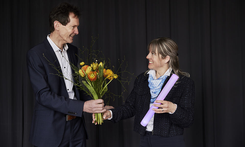 Am 26. Februar 2025 fand die offizielle Stabübergabe am PH-Institut NMS Bern statt. In einem feierlichen Rahmen würdigten Wegbegleiter des scheidenden Rektors Prof. Dr. Martin Stadelmann und die Präsidenten der strategischen Leitungsgremien der NMS dessen Beitrag zur Lehrer*innenbildung im Kanton Bern und begrüssten Prof. Dr. Katrin Müller als neue Rektorin.