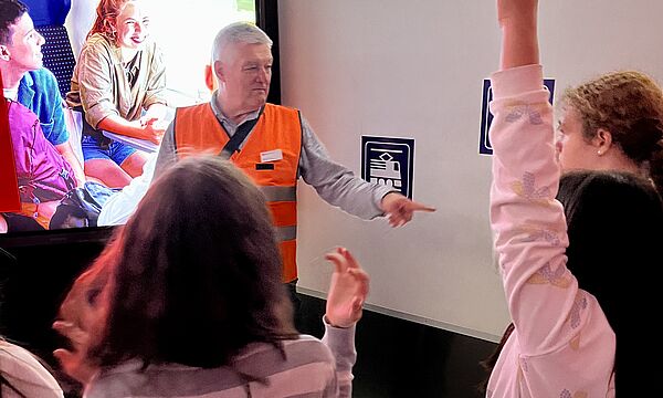 Im SBB Schul- und Erlebniszug in Bümpliz Süd tauchten sie in liebevoll und kreativ gestaltete Themenwagen ein und setzten sich spielerisch sowie interaktiv mit zentralen gesellschaftlichen Fragestellungen auseinander. Unter dem Leitthema „Verantwortung“ erkundeten sie Bereiche wie Energie, Sicherheit, Mobilität und Informationskompetenz.