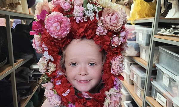 Natürlich wurde auch selbst gespielt: Im Stil der Commedia dell’arte entstanden eigene Masken und kleine Spielszenen – mit viel Witz, Ausdruck und Fantasie. Und im Kostümfundus verwandelten sich die Kinder für einen Moment in echte Theaterfiguren.